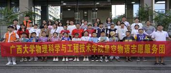 星空物语志愿服务团以饱满的精神状态和认真负责的态度,依托学院天象馆开展了一系列天文科普活动。先后接待了那坡县中小学优秀学子、西大第一附属幼儿园,组织了“超级月亮”观测活动等,服务了超过1000人次,在轻松愉快的氛围中让师生们感受到科研之美、宇宙之美。