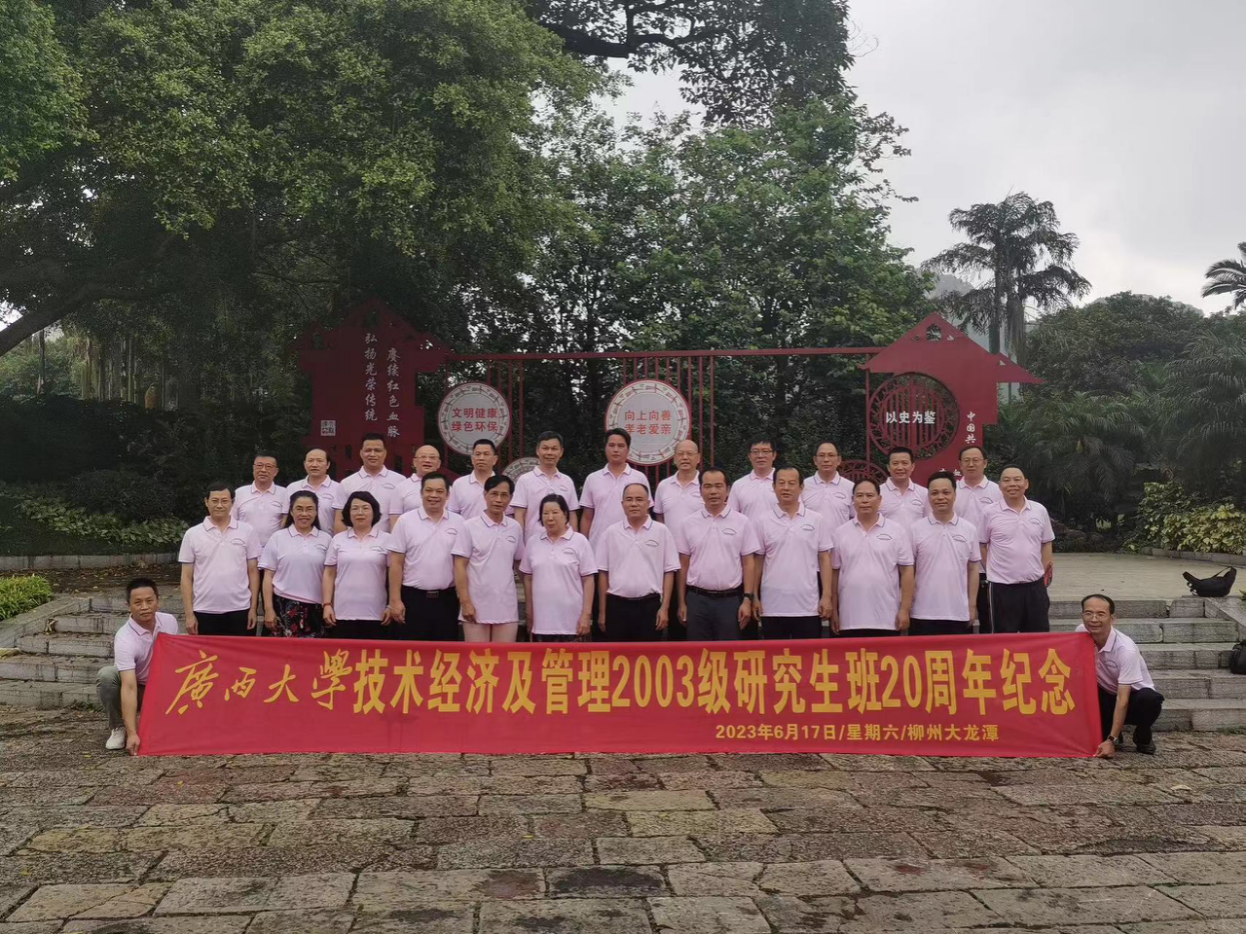 技术经济及管理2003级研究生班(柳州班)20周年纪念活动在柳州大龙潭公园举行,活动围绕“边照相、边交流、边唱歌、边朗诗、边听歌“——即“五边”的主题开展。小鸭看看