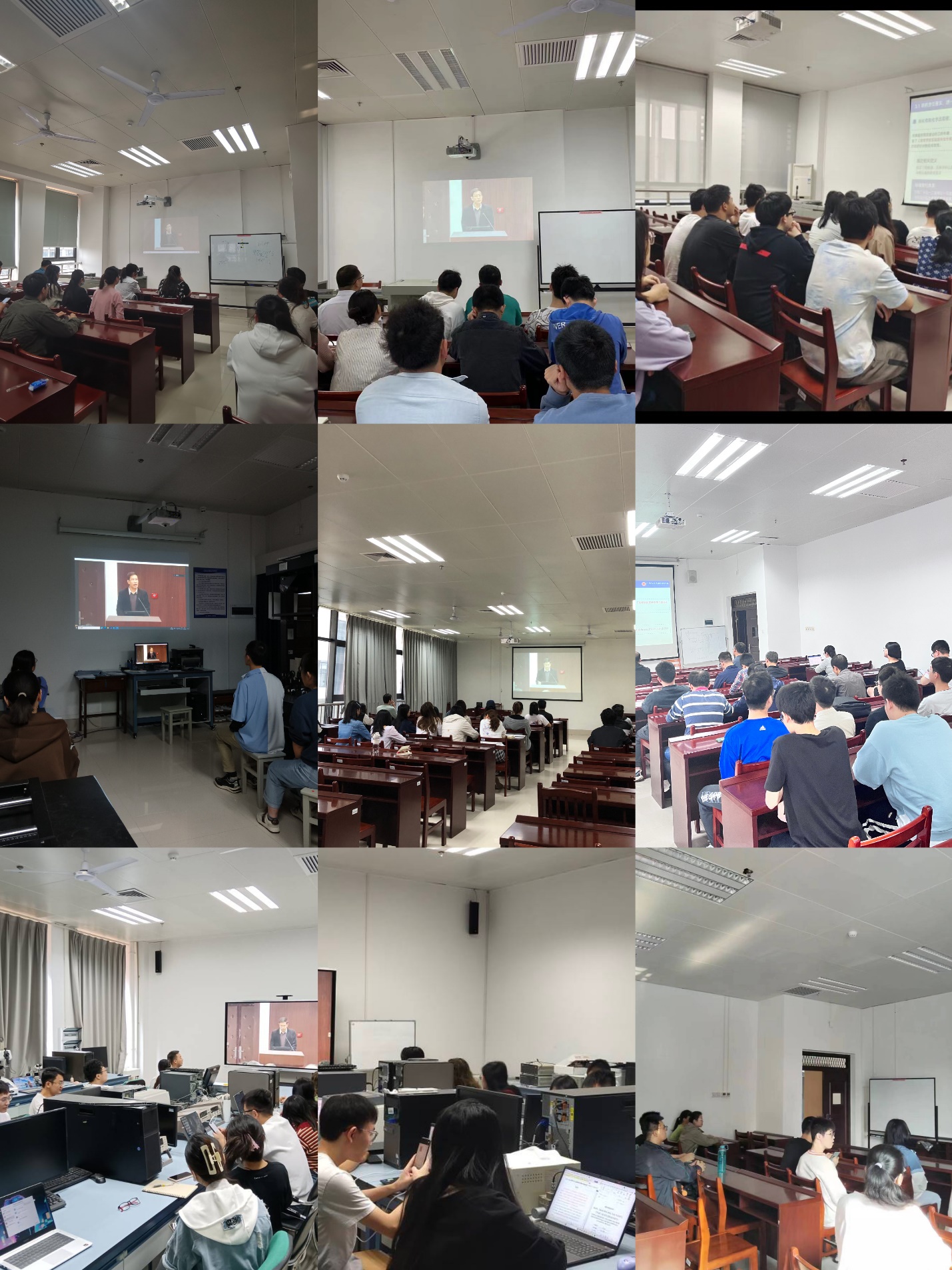 实验室安全工作分管领导、实验中心主任、实验室安全管理人员、新进实验技术人员在学校视频会议主会场参会,近400名师生在学院分会场参会。