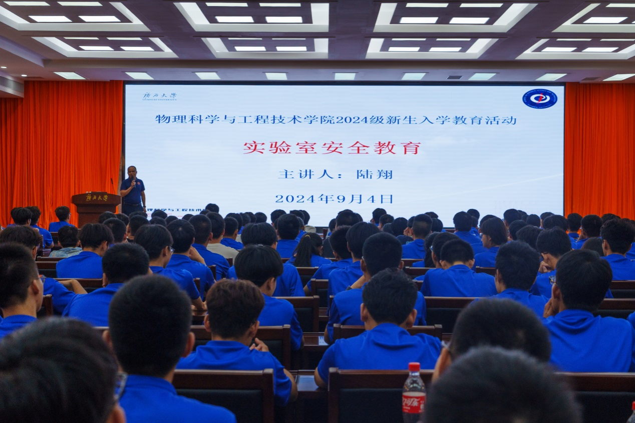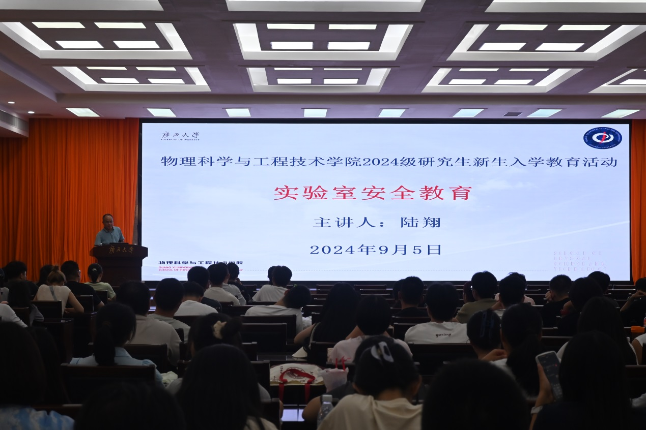 陆翔副院长在玉林厅分别为2024级全体本科生、研究生新生开展实验室安全教育培训,实验中心潘智毅副主任参加。