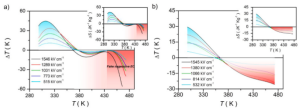氮化镓是第三代半导体材料,相比于第一、第二代半导体材料,有更强的极性。它作为衬底,可以调制铁电薄膜的电卡效应。我们在p-GaNn = 4 × 1017Pt/Si衬底上使用溶胶-凝胶法制备了掺Mn Pb(Zr0.3Ti0.7)O3铁电薄膜。通过p-GaN衬底的调制作用,使得Pt/Si衬底上的PZT-Mn薄膜的正电卡效应△Tmax~44.5 K150K的超宽范围内转变为纯负的电卡效应△Tmax~-23.5 K)。这些结果说明在高导电的p-GaN衬底上直接沉积薄膜可以作为一种简单的普适方法在较宽的工作温度范围内获得较大的负电卡效应。通过综合正负电卡效应有望实现具有高制冷性能的下一代制冷装置。