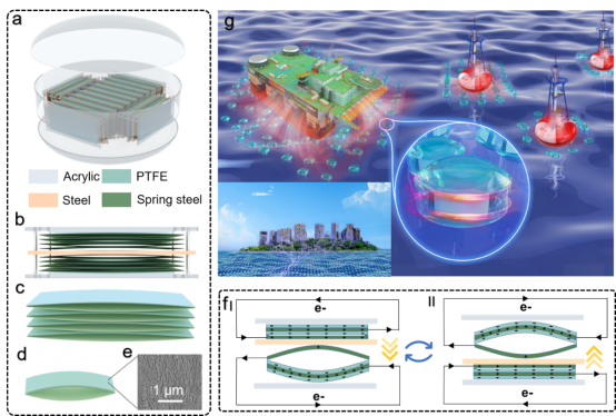 机械能对构建新型能源网络和智慧蓝色能源系统至关重要。近年来,摩擦纳米发电机在有效收集低频海洋波浪能转化为电能方面表现出独特的优势,成为发展新型可持续能源的科学技术。但以往波浪能摩擦纳米发电机的尺寸远小于波浪波长,或不利于波浪采集。