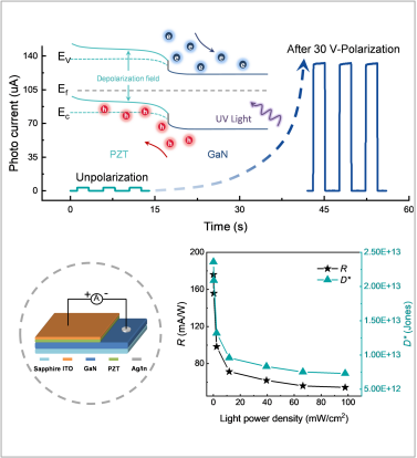 蓝色能源研究团队在高性能自驱动紫外光电探测器方面的研究中取得进展,研究成果以"Inverted-Structural Self-Powered GaN/PZT/ITO UV Photodetector Enhanced by Ferroelectric Modulation"为题在《Advanced Electronic Materials》杂志上发表。