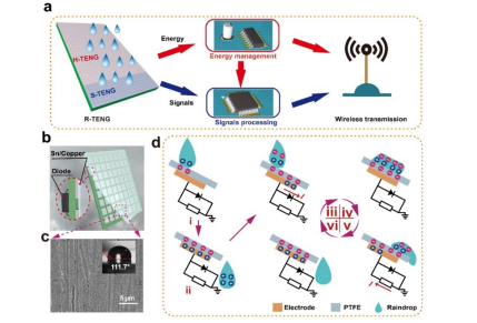 纳米能源研究中心团队开展了基于固-液接触起电的雨滴能驱动的自主式无线雨量计的研究,研究成果以"Raindrop energy-powered autonomous wireless hyetometer based on liquid–solid contact electrification"为题发表在《Microsystems & Nanoengineering》期刊上。