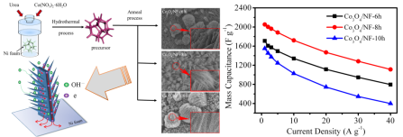 新能源材料团队黄海富等人开展了超级电容器电极材料设计和制备的研究,研究成果以“The hetero-structured nanoarray construction of Co3O4 nanowires anchored on nanoflakes as a high-performance electrode for supercapacitors”为题发表在《Applied Surface Science》期刊上。