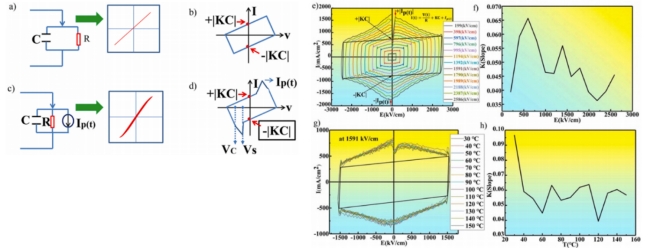 以往的研究大多是通过P-E loop来分析铁电材料的储能性能。本文结合P-E loopI-E曲线和拉曼光谱拟合,分析了铁电材料的储能性能,提出了一种等效电路模型(将铁电材料的I-E曲线视为等效电容C的等效电路),等效电阻R和极化电荷Ipt))并联,即It=Vt/R+KC+Ipt))。揭示了铁电材料介电损耗低、温度不敏感的原因。结果表明,斜率的稳定性K与铁电材料储能性能的稳定性呈正相关,为评价铁电材料的储能性能提供了新的依据。