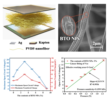 蓝色能源研究团队在高性能柔性压电纳米发电机和压力传感研究方面取得进展,研究成果以"High-performance Piezoelectric Nanogenerator of BTO-PVDF Nanofibers for Wearable Sensing"为题,被《Macromolecular Rapid Communications》杂志接受发表。