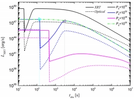 研究发现:当喷流的辐射区恰好被茧包围时,喷流电子的同步辐射会被显著抑制,针对茧辐射光子的外逆康普顿辐射主导喷流辐射,主要辐射集中在GeV-TeV能区;随着茧的演化,喷流的外逆康普顿辐射减弱,喷流电子的同步辐射逐渐回归主导地位。伴随于此,喷流低能段的辐射会在茧刚包围辐射区时出现陡降,尔后,缓慢回归到
