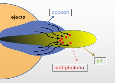 图1:伽玛暴喷流与茧的辐射模型示意图